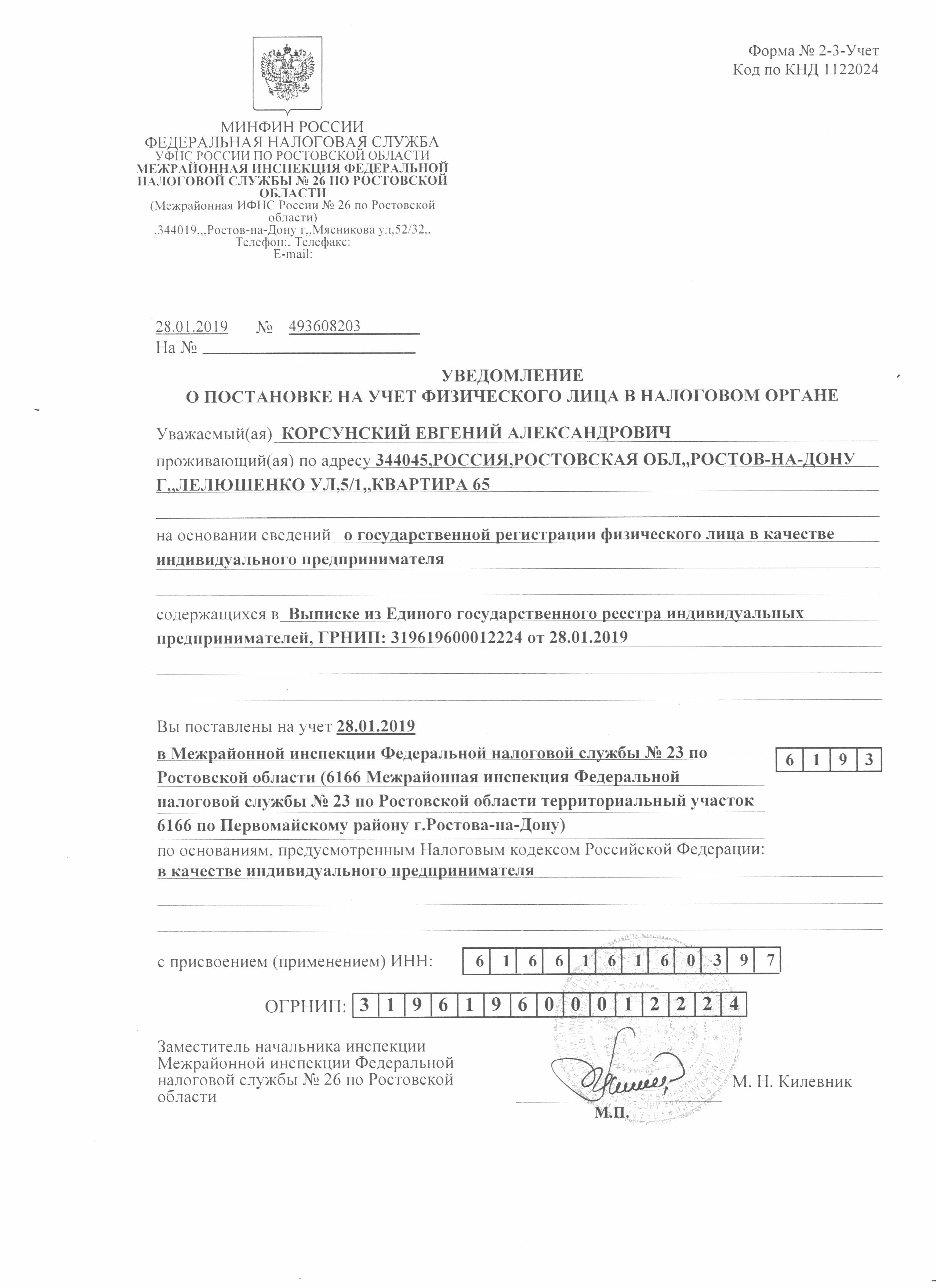 ОГРН — государственный регистрационный номер записи о создании юридического лица либо записи о первом представлении в соответствии с Федеральным законом Российской Федерации «О государственной регистрации юридических лиц» сведений о юридическом лице, зарегистрированном до введения в действие указанного Закона.